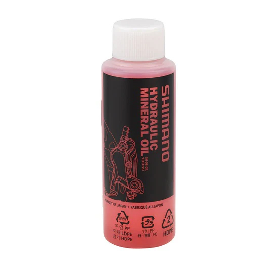 All Shimano hydraulic disc brakes use non-corrosive mineral oil instead of automotive type DOT fluid.