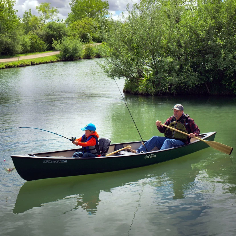 The Saranac 146 canoe packs in a ton of features at a great price. The Saranac 146 features rod holders, storage options and storage trays as well as two contoured seats with comfortable seat backs and a center bench seat (perfect for smaller passengers). From bow to stern the Saranac 146 provides versatility while delivering on fun. A great option for families, anglers or casual canoeists looking for a recreational canoe that performs well on the water.