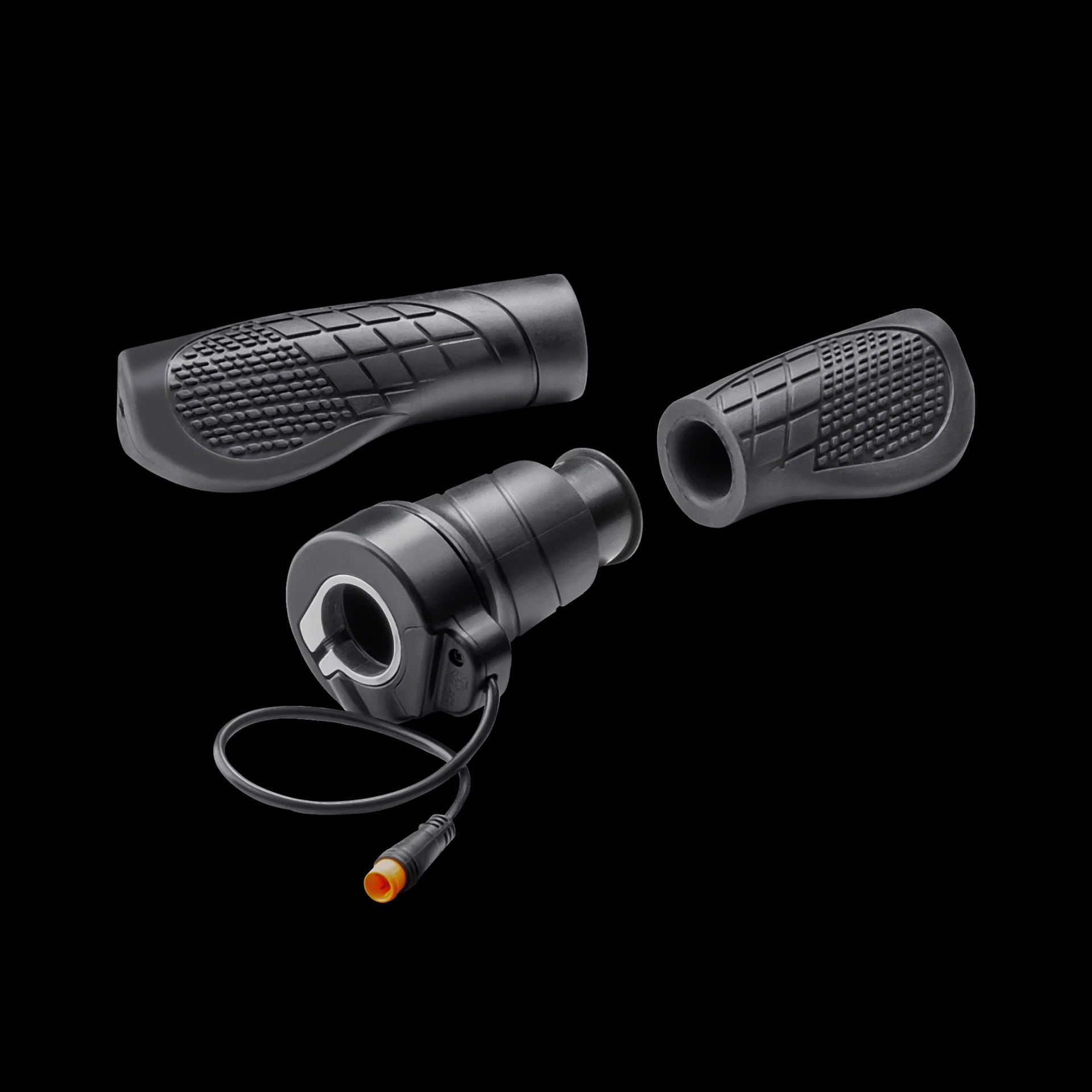Change your Velotric bike with our Twist Throttle set. It swaps the trigger throttle for a right-side twist throttle, enhancing control and comfort with an ergonomic palm rest. This kit is designed for easy installation and a smoother ride.