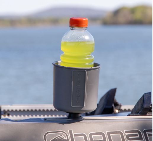 The YakAttack MultiMount Cup Holder quickly and easily attaches to most kayak track systems. Designed for maximum versatility, the MultiMount Cup Holder accepts anything from stainless steel tumblers to Nalgene®  Bottles to 12 oz cans and water bottles. Not thirsty? The MultiMount Cup Holder also makes a great place to put small tools and other items! Made in the USA.